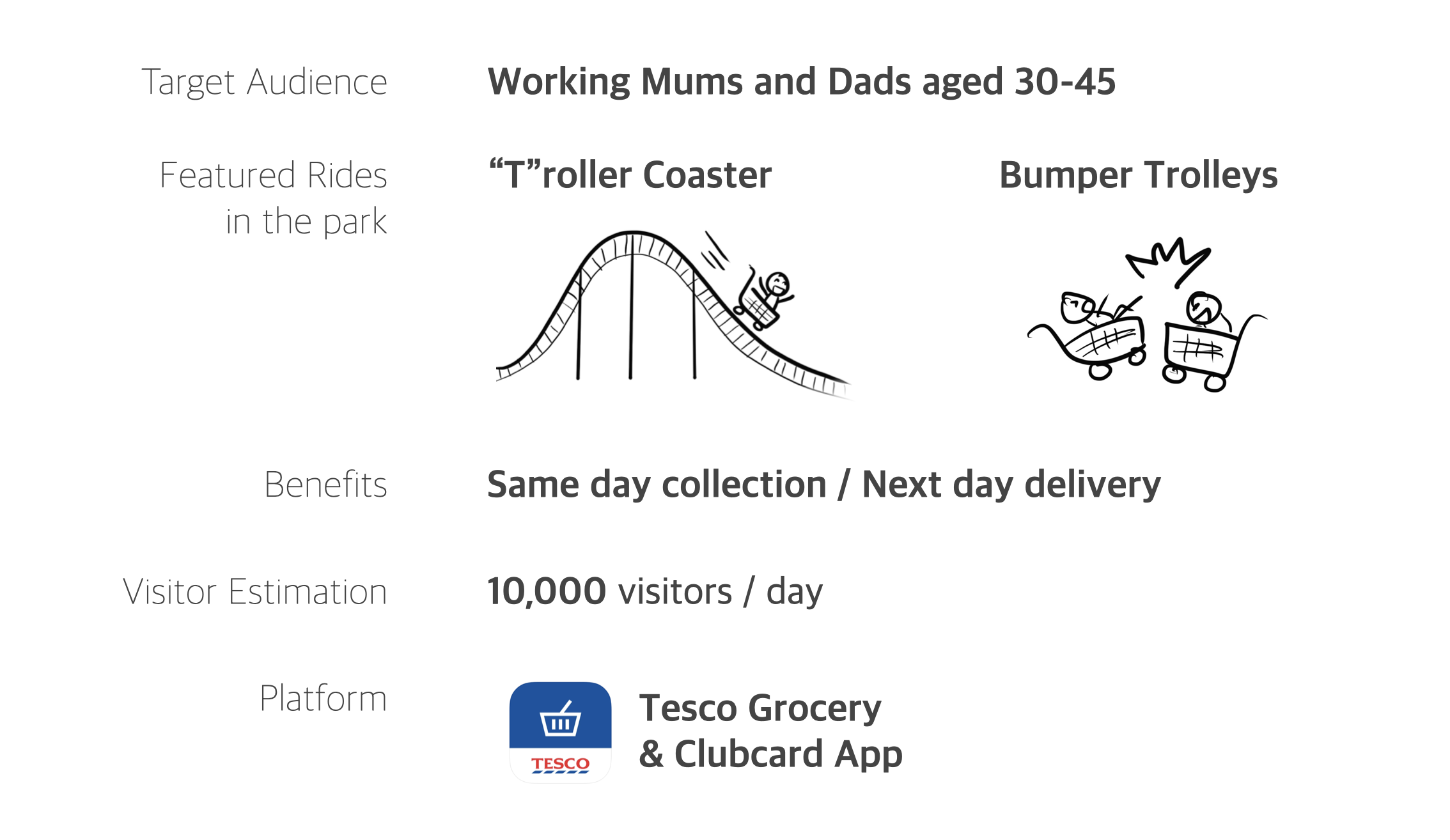 While I don't often showcase recruitment tasks in my portfolio, this design challenge from Tesco cross-overing a theme park was an exceptionally interesting project that I'm proud to include.