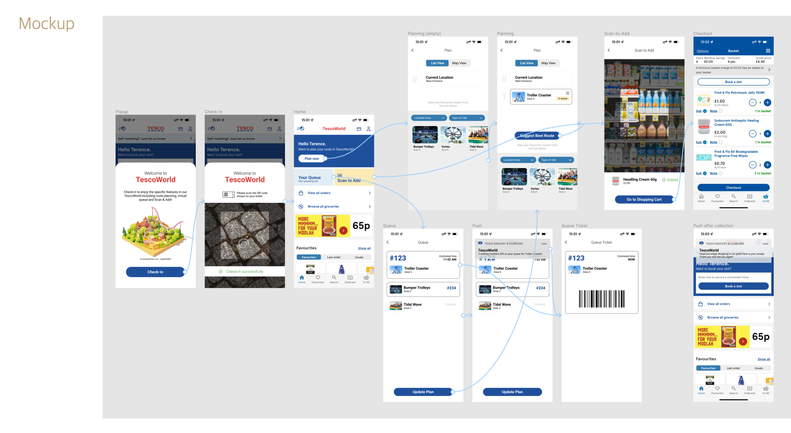 Finally, I refined the UI design, ensuring a visually appealing and intuitive experience that aligned with Tesco's brand style.